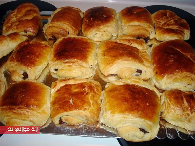 نخلط جميع المقادر من غير  زبذة تكون جانبا نعجن العجينة و نضعها في الثلاجة 30د نقسم  الزبذة إلى 3 أقسام كل مرة نطلق العجينة و نضع فوقها الزبذة و تطوى كما في الصورة هذه المرحلة تكرر 3 مرات كل مرة تبقى 30د في الثلاجة ونقطعها مثلاتات تترك تختمر لمدة ساعة تدهن بأصفر البيض تطهى في الفرن 160د و بالصحة و الراحة .