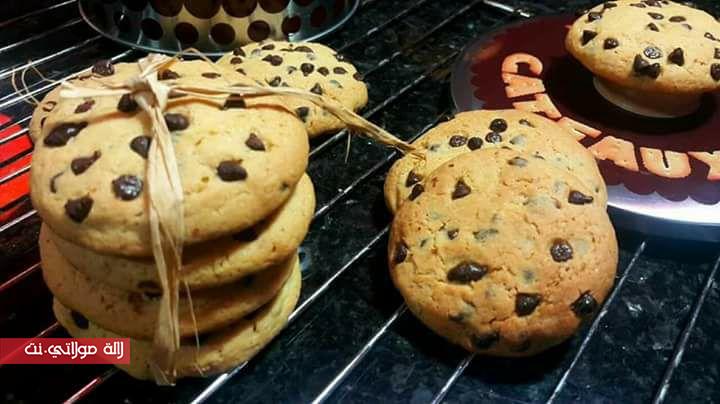 و كنخدمو الزبدة و السكر الأشقر و سكر الڤانيلا مزيآآآن، و كنضيفو البيض واحده بواحدة، و كنضيفو العناصر الناشفه بعد ما نكونو غربلناها و خلطناها مع بعضها، …الدقيق، ملح، خميره، و بيكاربونات، و في الأخير كنضيفو حبيبات الشكلاط، كنستفوهم في المول ديال الفرن، بعدما نكونو فرشنا ليه ورق الطبخ، حسب الحجم لي بغينا، ايلا بغينا حجم كبير كنحاولو يكون الوزن ديال كل وحدة 30غ وايلا بغينا حجم صغير، كنحاولو يكون حجمها 18غ، كنزوقوهم بحبيبات الشكلاط من فوق، أو حسب الرغبة، و كندخلوهم للفرن، ما بين 15 إلى 17د فقط.