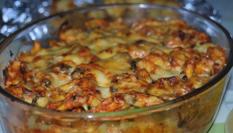 نأخد القالب الخاص بالكراتان ندهنه بالزبدة ونضع كطبقة اولية المقرونية و نعيد طبقة اخرى من الكلمار و هكدا حتا ننهي كل الطبقات نغطي الوجه بالجبن المبشور وندخله للفرن 5 دقائق وبالصحة والراحة.