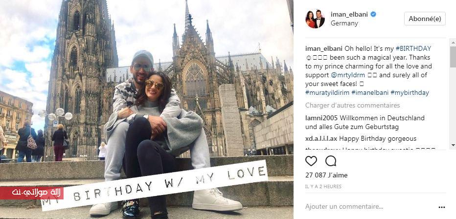 نشرت ملكة جمال المغرب سابقا إيمان الباني صورة عبر حسابها على موقع التواصل الاجتماعي يومه الأحد، رفقة زوجها تتخللها جملة تقول فيها ”عيد ميلادي رفقة حبي”.
