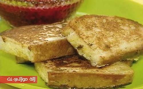 سخني الزبدة في مقلاة ثم مرري شرائح الخبز حتى يصير لونها ذهبيا من الجانبين.