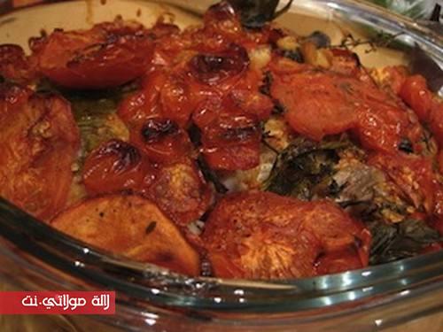 سخني الفرن و ضعي افخاد الدجاج تتحمر قليلا ثم ضعيها في صحن مع اضافة بقية التتبيلة مع اضافة الزيتون المطحون