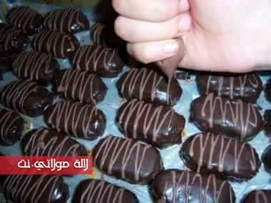 ثم ندوبو شكلاط أبيض ونضفو شوية شكلاط أسود بش يعطينا اللون بنى ونزينها