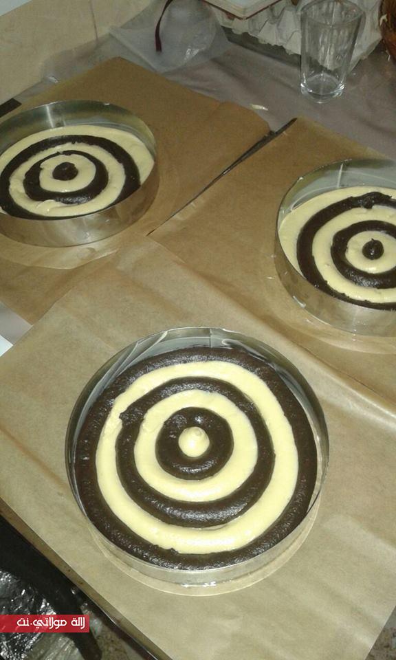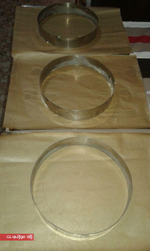 تلصق أقراص الكيك بالكناش على التوالي 1-2-3 .