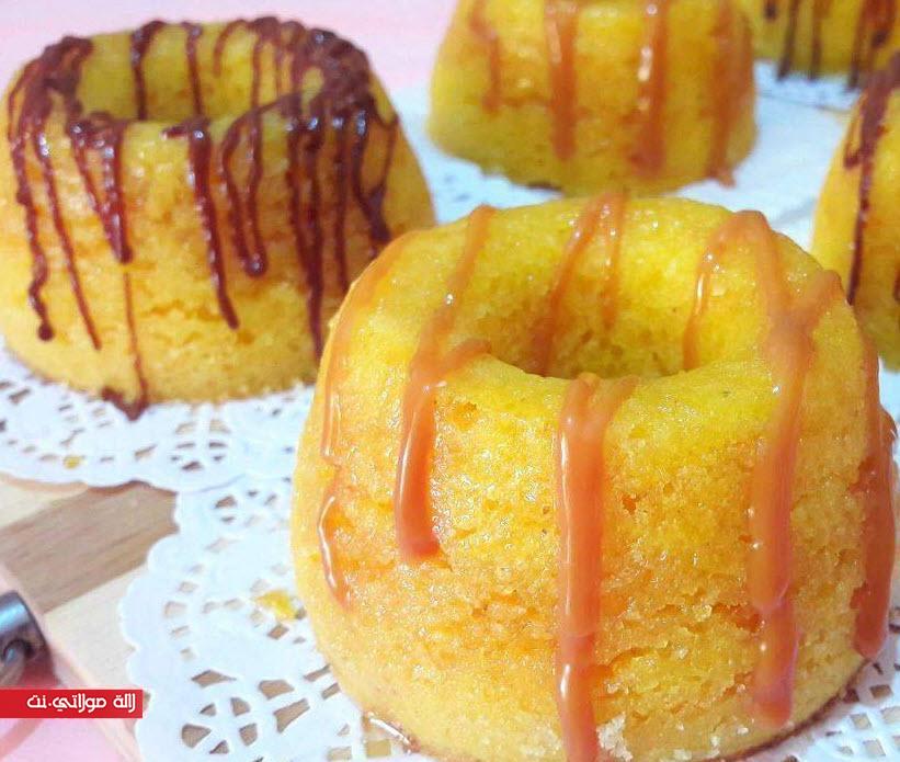 و نعملو الخليط في قوالب مدهونة بالزبدة ، و نرشو بالسميدة ، ثم نضع الخليط و ندخلوه للفرن مشعول من الفوق و تحت.