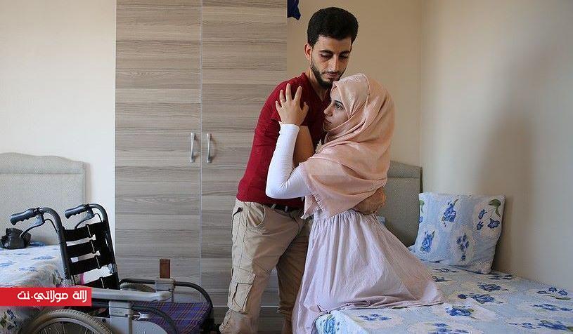 ونشرت وكالة شهاب للأنباء صورا للمعلمة التي شاءت الأقدار أن تفقد قدميها نتيجة قصف طائرات النظام السوري للمدرسة التي كانت تعمل بها في مدينة إدلب السورية، ولكن قصتها لم تنتهي عند هذا الحد، فوفاء زوجها لها واعتناؤه بها جعل منها مصدر أمل للعديد من النشطاء عبر العالم إذ أشاد العديد منهم بشهامة شريكها الذي أبى أن يتركها في ظل المعاناة التي مرت بها.