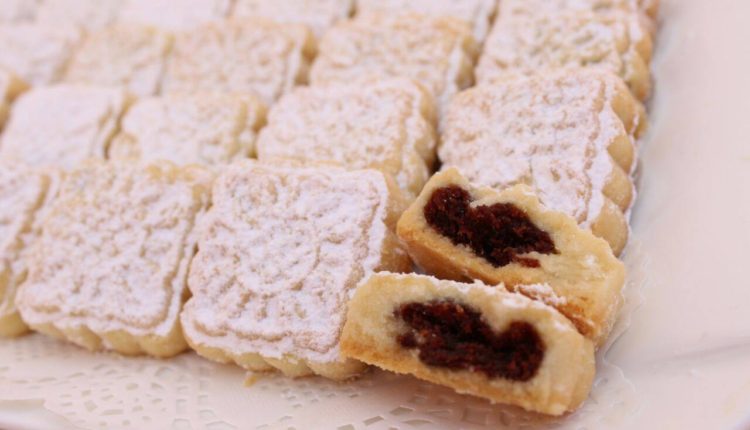ونبداو نبسطو كل كويرة ديال العجينة ، ونعمروها بكويرة ديال التمر حتى نساليو ، ونرشموها بالطابع ديال المعمول وندخلوها طيب بلا ماتحمر ومن بعد مطيب نرشوها بشوية سكر كلاصي.