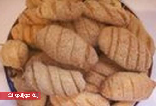 نضع العصيات في الاطة الفرن ونقوم بعمل خطوط بالسكين على العجين كما هو مبين في الصورة وتدخل الى الفرن حتى تستوي