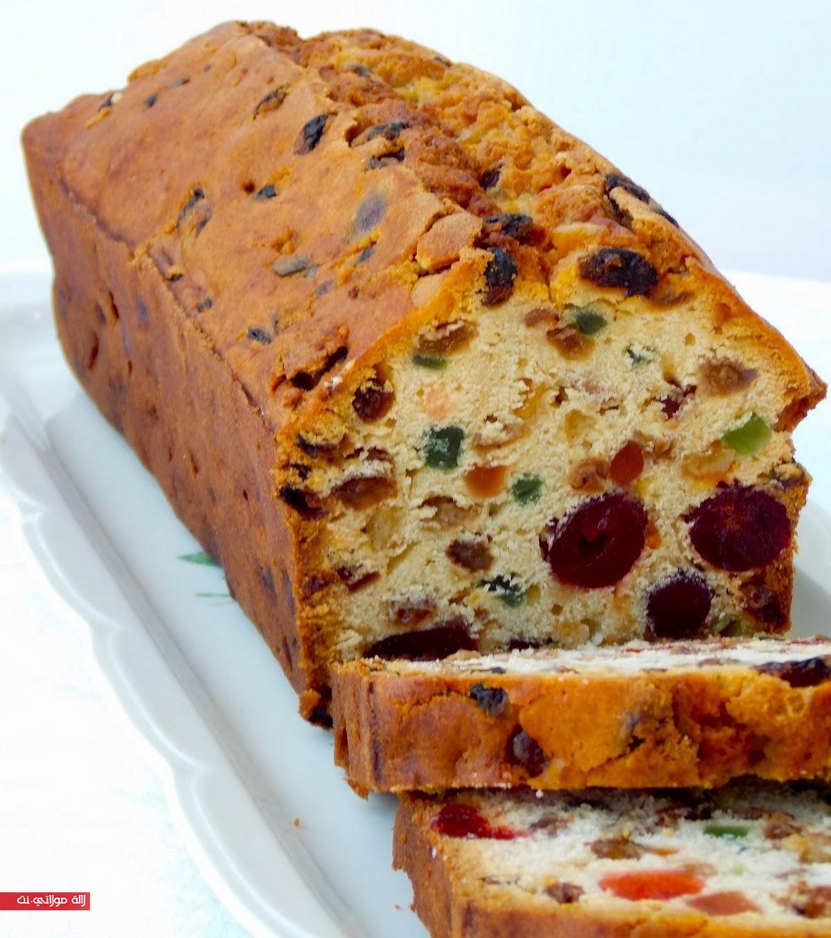 في الخلاط الكهربائي نجمعوا كل المكونات ، ونترك الدقيق و الخميرة في الأخير ، ونمرر الفواكه المعسلة في الدقيق و نضيفها للخليط .