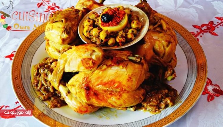 نزيل الدجاج ويدهن بالزبدة والسمن ويحمر في الفرن ثم نوقف مرق البصل ونضيف الزيتون وقشرة الحامض ويقدم بالصحة والراحة.
