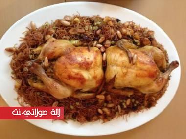 يضاف الماء أو المرقة إلى الدجاجة وتخبز في فرن حرارته 350 درجة فرنهايت لمدة ساعتين أو ساعتين ونصف الساعة، مع ضرورة تبليلها بين الحين والآخر بالعصارات الموجودة في الصينية.