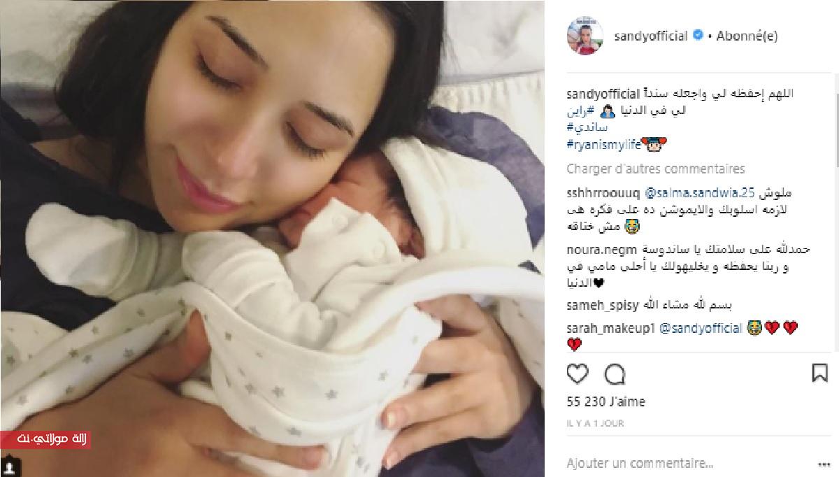 نشرت المطربة “ساندي” على حسابها الخاص عبر موقع التواصل الاجتماعي “إنستغرام” صورة لها رفقة مولودها الجديدة مرفقة إياها بتدوينة تقول فيها: “اللهم إحفظه لي واجعله سنداً لي في الدنيا”.
