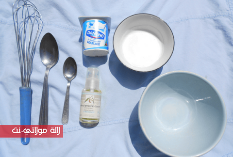 قومي بوضع 3 ملاعق أو 4 ملاعق من حليب جوز الهند حسب طول شعرك، أضيفي إليه ملعقة كبيرة من زيت اللوز، ثم أضيفي ملعقتين كبيرتين من الياغورت الطبيعي، اخلطي الكل جيدا حتى تحصلي على كريم رطب ولين، طبقيه على فروة شعرك من الجذور حتى الأطراف، ادلكي الخليط جيدا، اتركي القناع  لمدة ساعة كاملة، اشطفي شعرك جيدا بالماء البارد واغسليه بالشامبو كالمعتاد. كرري استعمال القناع عند كل استحمام.