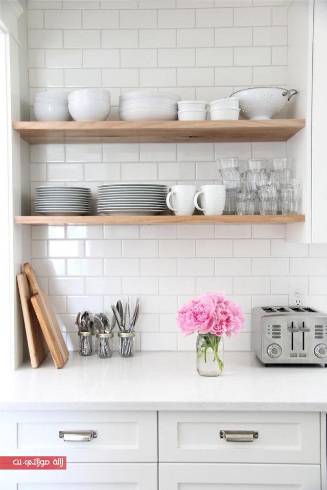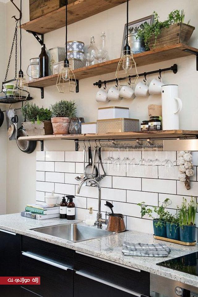إذا كنت تعانين من صغر حجم مطبخك وتبحثين عن طريقة عصرية لتخزين أدوات المطبخ، فيمكنك اللجوء إلى الأرفف المكشوفة والتي يمكنك تعليقها على الحوائط، وترتيب الأكواب والصحون عليها بأسلوب فني ليحاكي ستايل المطابخ الأوروبية. وللحصول على ديكور مطبخي جذاب، زيني الأرفف بالزرع الأخضر وراقبي كيف سيبدو مظهر مطبخك.