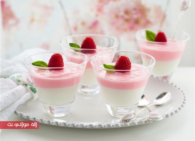 عند التقديم تزين الكاسات ببضع حبات من التوت.