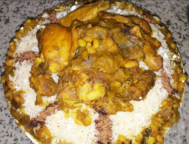 ونزين سفة الروز بالدجاج ديالنا حسب الذوق والرغبة وبالطريقة التي نفضل