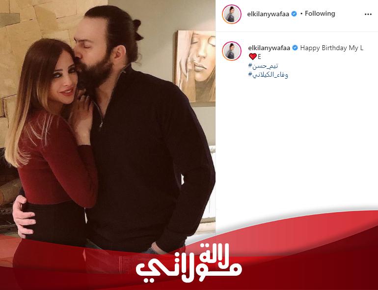 وكتبت الإعلامية وفاء الكيلاني تعليقاً على الصورة قائلة: عيد ميلاد سعيد حبيبي Happy Birthday My Love “” مع وضع قلب أحمر، كما وضعت في خاصية اليوميات “”Stories صورتين لقالب التورتة البيضاء بالورد الأحمر على شكل قلب.يذكر أن هذه الصور هي الصور الرسمية الأولى التي تجمع الزوجين تيم حسن ووفاء الكيلاني على حسابها الرسمي بانستغرام ، منذ نشر شائعات انفصالهما في الفترة الأخيرة منذ ديسمبر الماضي.