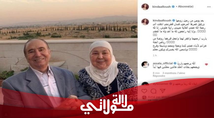 ونشرت كندة علوش صورة عمتها الراحلة وزوجها المتوفي، عبر حسابها الخاص بموقع التواصل الاجتماعي “انستغرام” وكتبت:”بعد يومين من رحيل زوجها ورفيق عمرها المرحوم غسان قطرنجي انتقلت الى رحمة الله عمتي الغالية حبيبتي رانية علوش”.