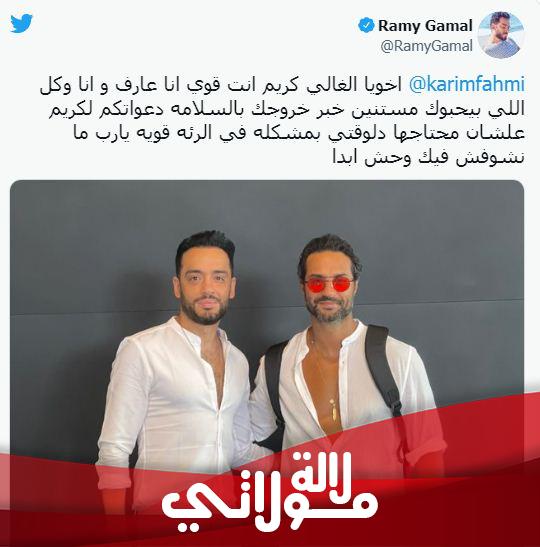 وبمجرد انتشار الخبر بادر عدد من أصدقاء الفنان المصري بالدعاء له، من ضمنهم الفنان رامي جمال الذي غرد عبر حسابه على تويتر قائلا :”اخويا الغالي كريم انت قوي انا عارف و انا وكل اللي بيحبوك مستنين خبر خروجك بالسلامه دعواتكم لكريم علشان محتاجها دلوقتي بمشكله في الرئه قويه يارب ما نشوفش فيك وحش ابدا”.