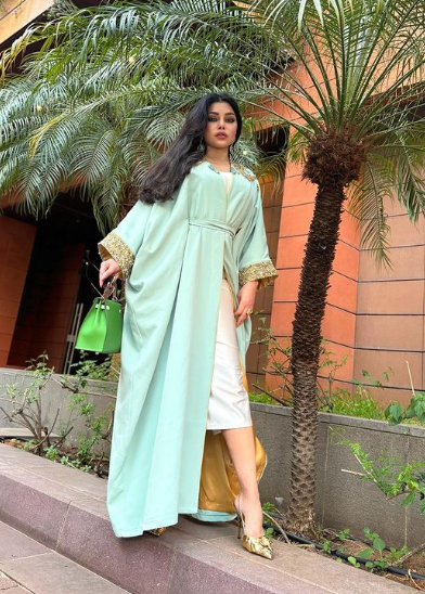 ظهرت هيفاء وهبي في جلسة التصوير بإطلالة رمضانية أنيقة، حيث ارتدت فستان طويل ميتالك ونسقتى معه قفطان باللون اللبني المطرز بأسمها ذات اللون الذهبي.