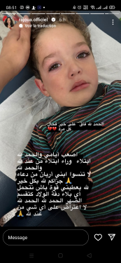 ونشرت رجوى الساهلي صورة لابنها وأرفقتها بتدوينة قالت من خلالها:”أصعب أيامي والحمد لله ابتلاء وراء ابتلاء من عند الله والحمد لله، لا تنسوا ابني أريان من الدعاء .”