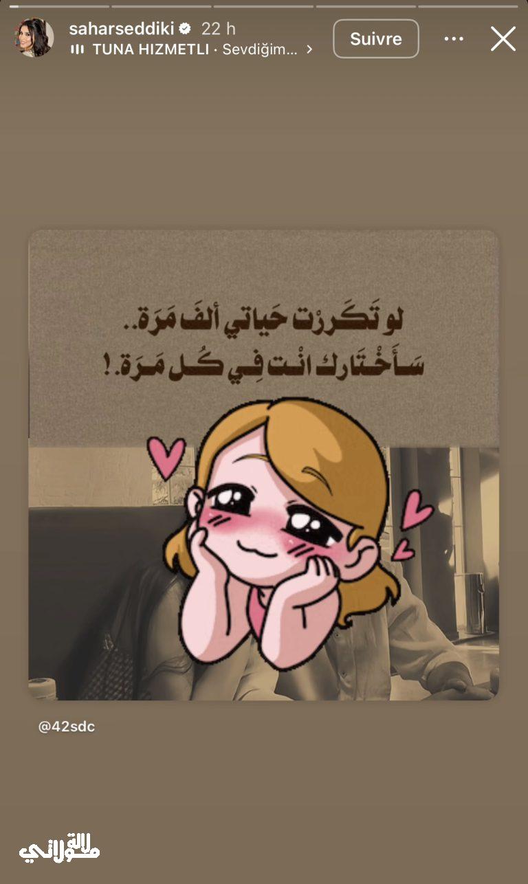 وقد ظهرت الصديقي من خلال حسابها الرسمي على “إنستغرام” وهي تنشر رسوما متحركة عبر خاصية “الستوري”، مرفقة بتدوينة رومانسية أشارت فيها إلى مشاعرها العميقة، إذ كتبت: “لو عادت بي الأيام ألف مرة سأختارك أنت في كل مرة”.
