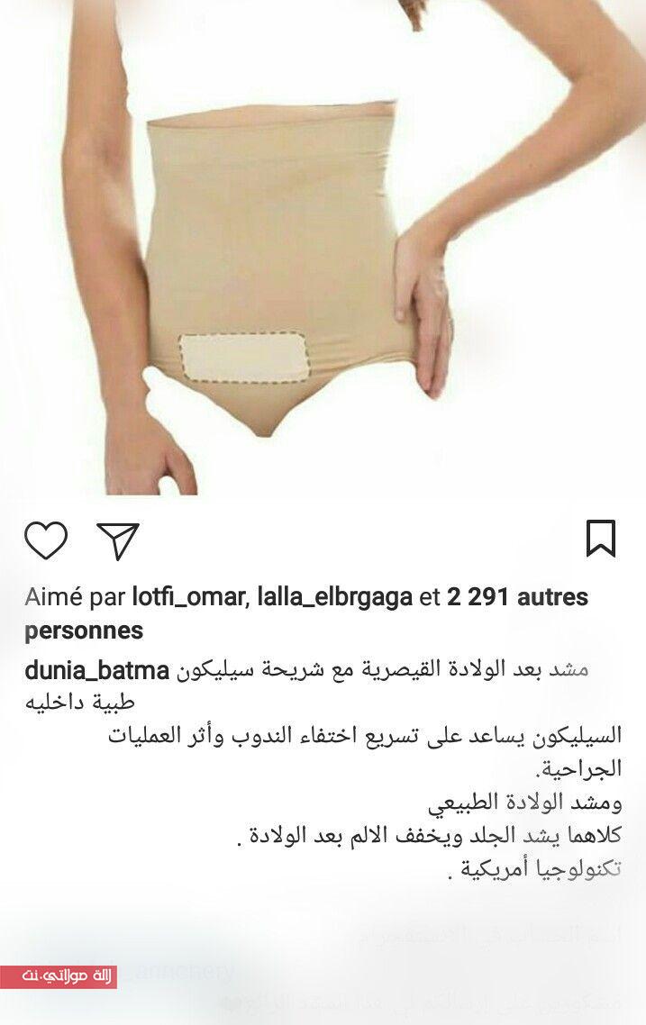 كشفت الفنانة المغربية دنيا بطمة بحسابها الرسمي على موقع التواصل الإجتماعي « إنستغرام » عن سر استرجاعها لرشاقتها ولوزنها الطبيعي بسرعة كبيرة مباشرة بعد الولادة.ونشرت « بطمة » صورة لمشد بعد الولادة عبر نفس الموقع المذكور أرفقتها بنصيحة قالت فيها: « مشد بعد الولادة القيصرية مع شريحة سيليكون طبية داخلية، السيليكون يساعد على تسريع اختفاء الندوب وأثر العمليات الجراحية.وأضافت: « مشد الولادة الطبيعي، كلاهما يشد الجلد ويخفف الالم بعد الولادة، تكنولوجيا أمريكية .وختمت الفنانة ذاتها حديثها، موجهة الشكر للمحل الذي اقتنت منه المشد والذي ساعدها على التخفيف من وزنها واستعادة رشاقتها.وتميزت « بطمة » بعدة ألقاب لتألقها الدائم بأرقى الأزياء التي ترتدتيها سواء في إطلالاتها اليومية أو في المناسبات التي تحيي فيها حفلاتها الغنائية في دول الخليج أو في المغرب أو في أوروربا.