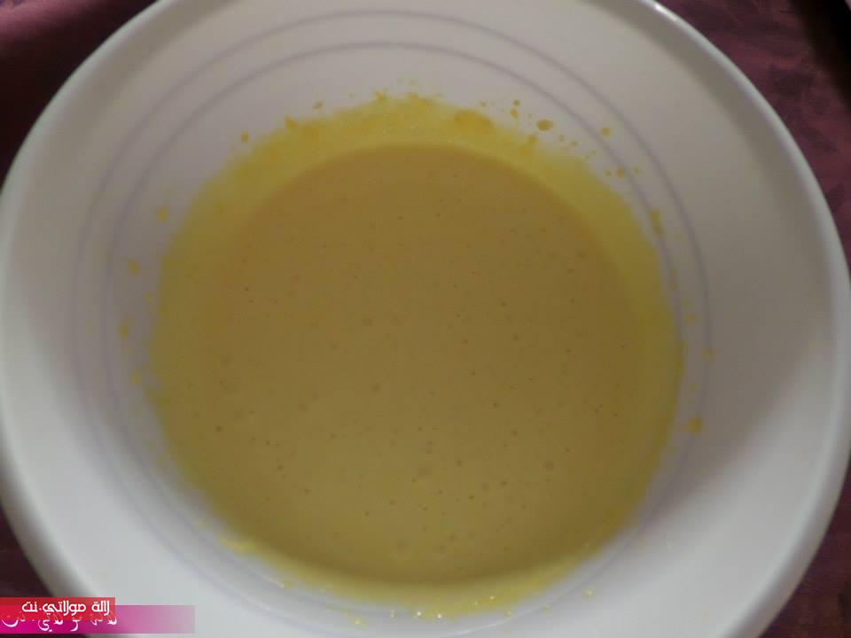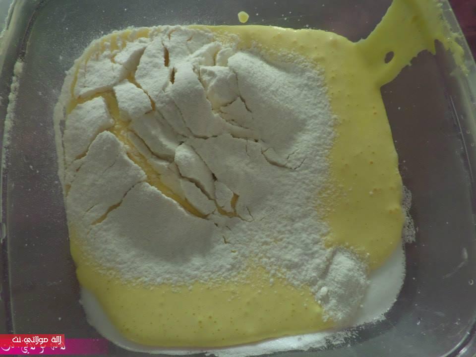 نمزج البياض و الصفار و الدقيقالمغربل شيئا فشيئا