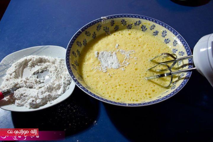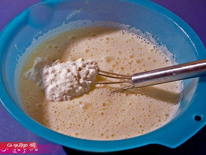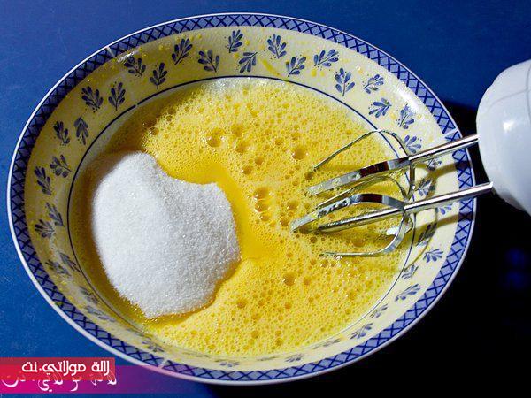 ثم نضيف السكر مع الاستمرار في التطريب دقيقتين