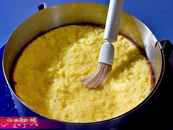 نضع نصف الكيك في الاطار الخاص بالحلوى