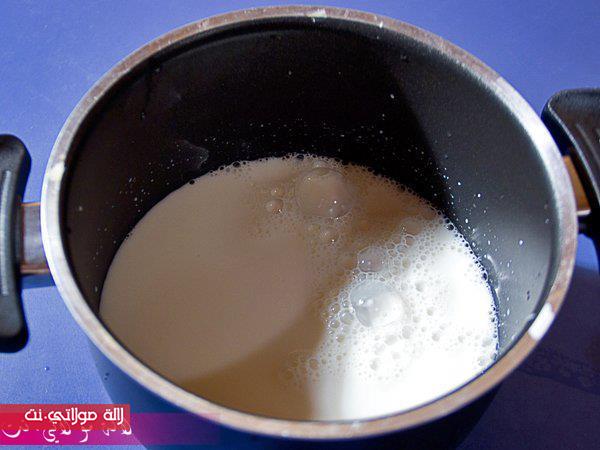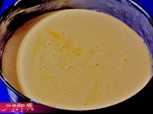 نضيف الجيلاتين الى الكريمة الساخنة دون التوقف عن التطريب