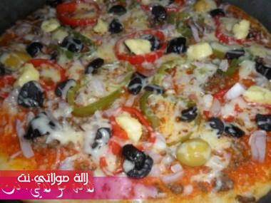 قومي بتجهيز صلصة الطماطم .. اللحم المفروم .. الفلفل .. البصل .. الزيتون .. وجبنة الشيدر