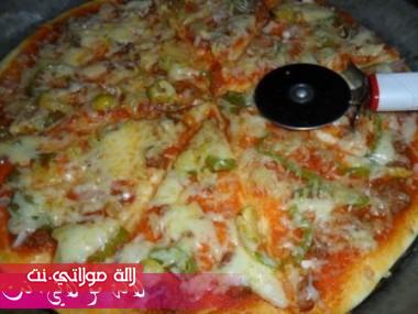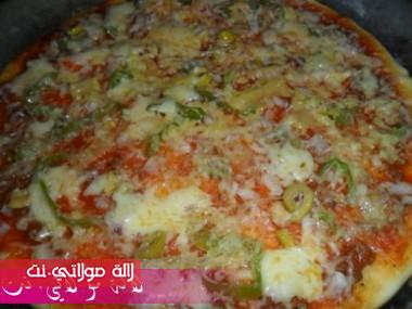 قومي بتسخين الفرن على 230- 250 درجة وضعي البيتزا تطهى في الأسفل وستاخذ حوالي 10 إلى 15 دقيقة حسب الفرن