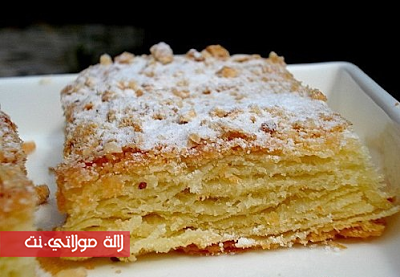 وندخله إلى الفرن تحت حرارة درجتها 200 درجة ولمدة 15 دقيقةحتى تحصل على لون ذهبي،نخرجها من الفرن وندهنها بالمربى ونرش عليها اللوز وبدرة السكر،