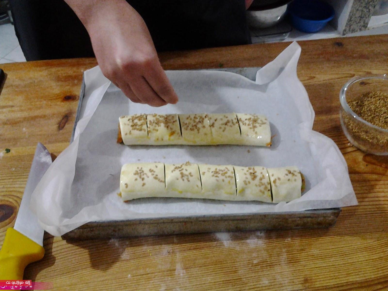 طريقة التحضير : في مقلات فوق النار نشحر البصل في الزيت والزبدة ونضف الملح حتى يدبل البصل تم نضف الشمبنيون المقطع ونتركه بضعدقائق حتى يتحمرو مع بعض في اناء نصب خليط البصل والشمبنيون ونضف الكفت و الجزر المحكوكو المعدنوس وشبلور وابزار والزنجبيل ورشت ملح ونعجن الكل مع بعض ونصنع منه قضبان نطلق العجينة ونمد الحشوة على شكل قضيب ونلف عليها العجينة كما نوضح في الصور نضع القضيب في طاوت الفرنونشقق وجه القضيب وندهنهو بالبيض ونرش فوقهو الزنجلان وندخلهو للفرنسيين حتي يطيب ويتحمر ونقدمها ساخنه