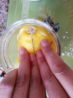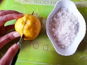 3- تملاء كل ليمونة حامضة بمقدار ملعقة كبيرة من الملح.