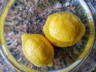 1- يغسل الليمون الحامض جيدا ثم ينقع في الماء فاتر لمدة 24 ساعة