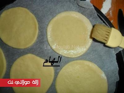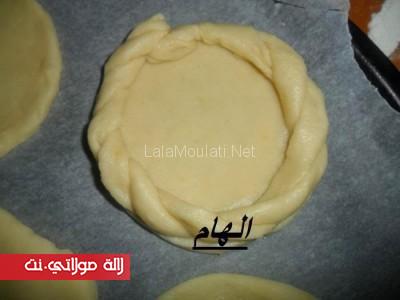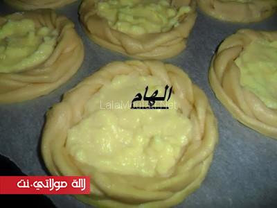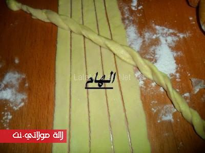 ثم نشكل منها اشكال مثل ماهو موضح في الصور قبل وضع الضفيرة ضروري ان نذهن العجينة
