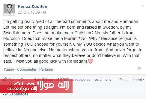 اشعلت المدونة كنزة زويتن، وهي سويدية من أصل مغربي، مواقع التواصل الاجتماعي، بعد أن أعلنت أنها لا تصوم رمضان، وأنها بالرغم من أنها مغربية الأصل، ليست لا مسلمة ولا مسيحية، وأنها لا تدين بأن ديانة.