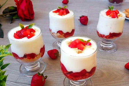 ندك نصف لتر حليب وقليل من الفراولة وجدي ألذ وأسرع تحلية رمضان بدون فرن بدون بيض ولا كريمة