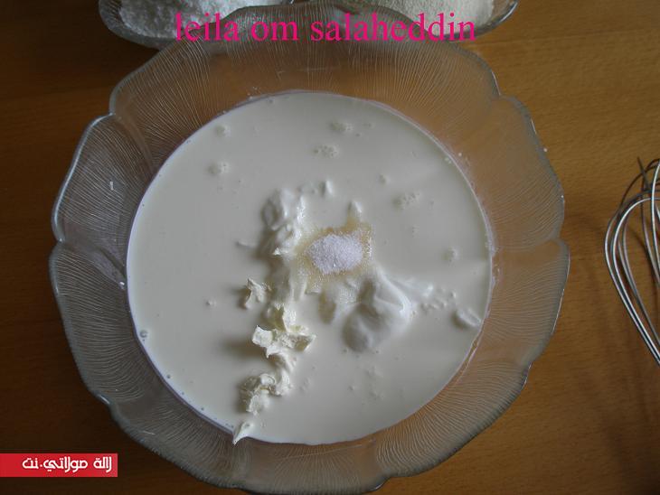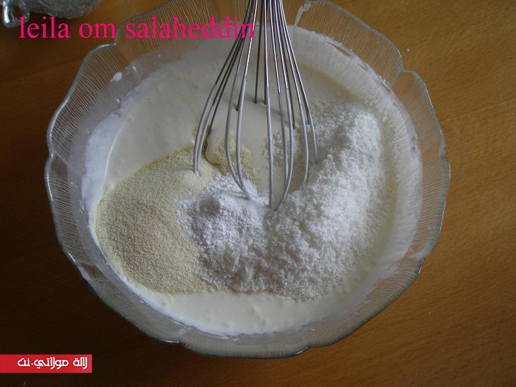 2دانون – 200clكريمة -فاني -معلقة كبيرة خميرة الحلوى – السميدة رقيقة -الكوك مقادير السيرو: كاس كبير من الماءـ كاس كبير سنيدة- 2فاني -نقيطات من عصيرالحامض تانخلطو دانون + كريمة+ فاني من بعد نزيدو السميدة رقيقة + الكوك + معلقة كبيرة خميرة الحلوى