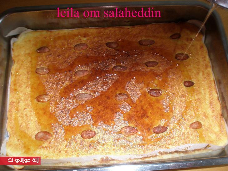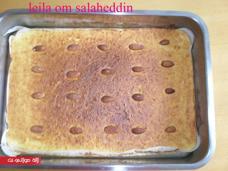 متاتكونش خفيفة وماتكونش قاصحة من بعد نخويوها فالطاوة ونزينو باللوزوندخلوها للفرن هاهي ملي خرجتها من الفران مباشرة ملي نخرجوها من الفرن تانسقيوها بالسيرولي حضرناه من قبل :درنا السكر +الماء + الفاني+عصير الحامض و نديروه فوق النار حتى يتقال و نخلليوه يبرد عاد نسقيو بيه تانخلليوها تشرب السيرو و نقطعوها ونقدموها .. بالصحة و الراحة.