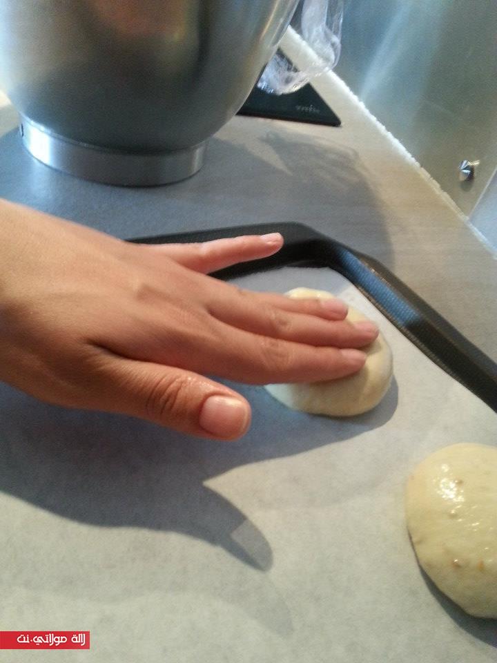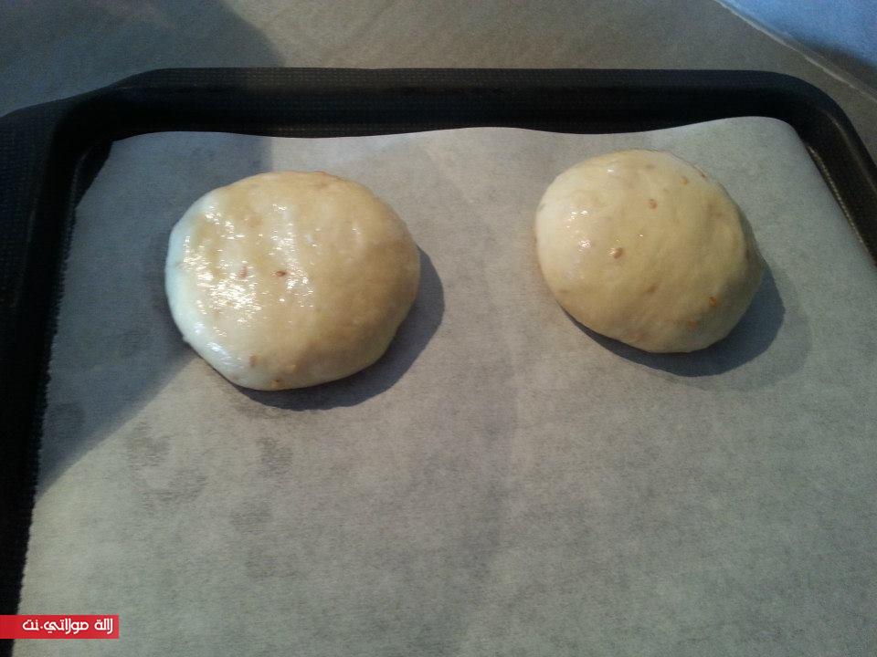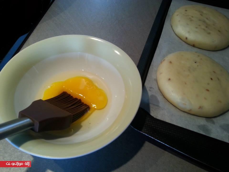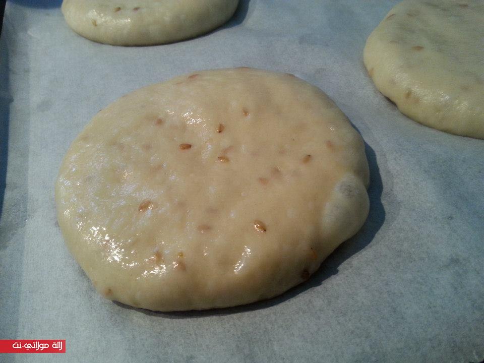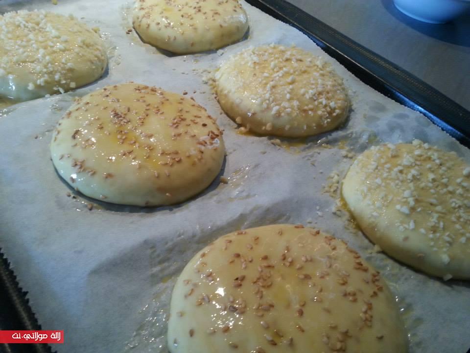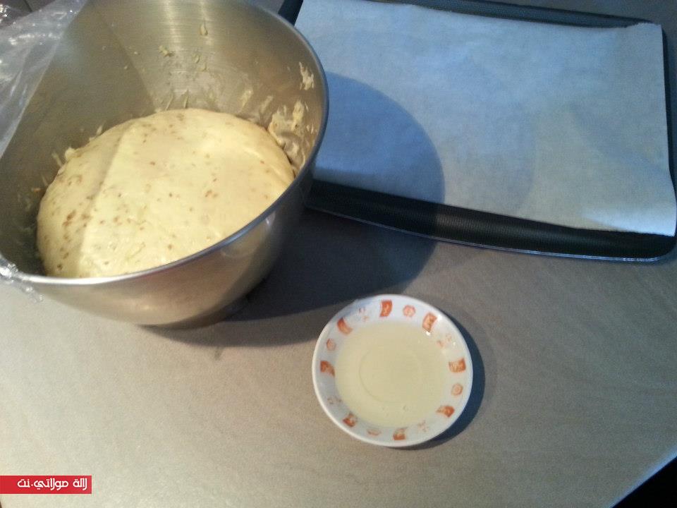 -العجين يكون مطلوق شوية وهاد هو السر باش يجي مفشفش من الداخل نعمل شوية الزيت في ادينا ونحاول نجمع الخليط و نترك يخمر مزيااااان من بعد نأخد صينية ونعمل فيها الورق الخاص بالطبخ أو نذهن بالزيت نشكل كرات ونبسطهم مزيان يكونو متباعدين ونخليهم يخمرو مرة أخرى ولكن غي نشوفهم طلعو شوية ندهنهم بأصفر البيض ونرشهم بالجنجلان واللوز وندخلهم الفرن حتى يتحمرو مزيان وبالصحة