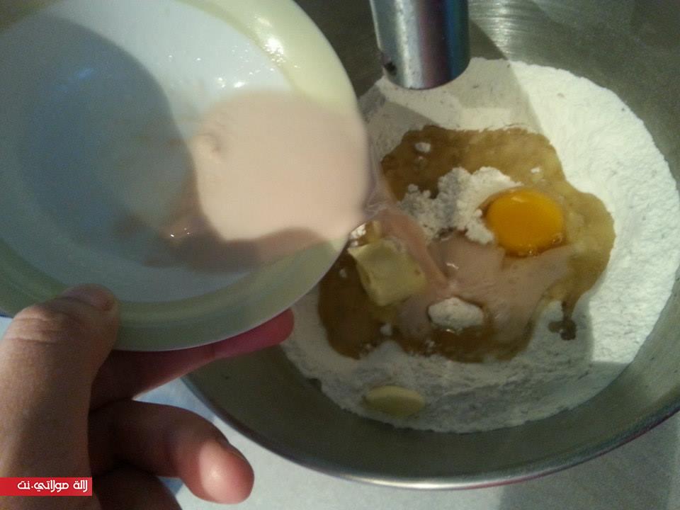 -نعمل الخميرة دالخبز فشوي ماء دافئ تطلق