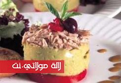 توضع كل دائرة محشوة في طبق تقديم كل ضيف. ترفع بعدها الدائرة المعدنية بعناية فائقة ويزين الطبق بالقليل من أوراق الخس الأخضر. يسكب القليل من صلصة الليمون فوق أوراق الخس وتقدم السلطة مع الخبز المحمص.