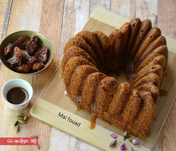 6. في قالب مدهون زبدة وعليه القليل من الدقيق نضع خليط الكيك ويدخل فرن مسبق تشغيله مدة 35 دقيقة او الى ان ينضج الكيك.