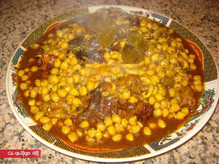 قومي بقلي الكرعين مع كل التوابل المذكورة، أضيفي البصل والثوم والماء ثم قومي بإغلاق الطنجرة جيدا، وبعد مرور 30 دقيقة أضيفي الحمص مع إغلاق الطنجرة من جديد حتى يطهى الكل جيدا، قدمي الطبق ساخنا.