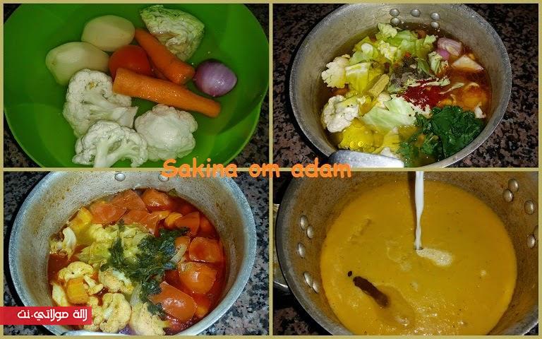 1. تقطع الخضر نضيف لها التوابل زيت الزيتون كنور و الماء الكافي لي طيب لينا فيـه الشوربة, ثم نقفل عليهم الكوكوط حتى تطهى