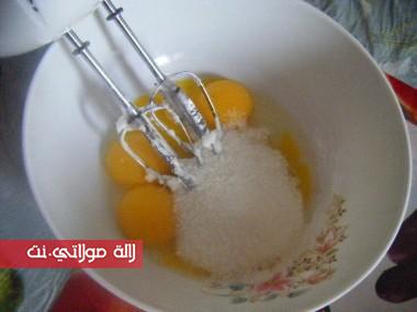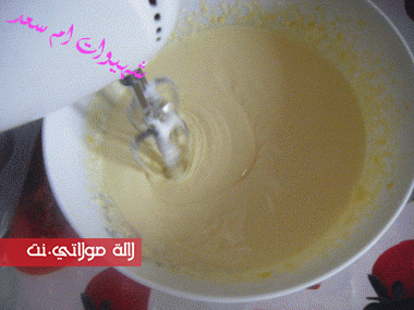 3 وتنخدمو صفار البيض مع سنيدة حتى نحصلو على كريمة عاقدة شيئا ما