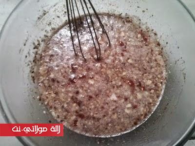 نضيفو مع التحريك الزبيب والقرفة والفاني والخمارة وأخيرا الدقيق